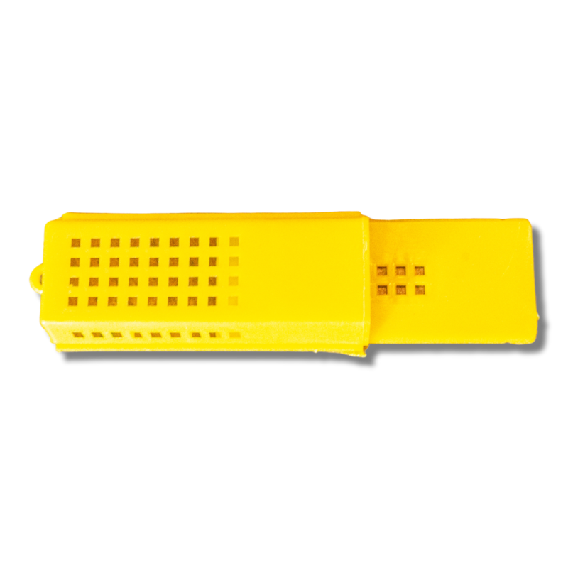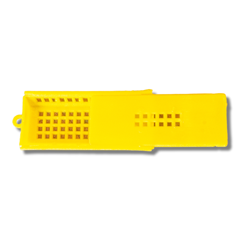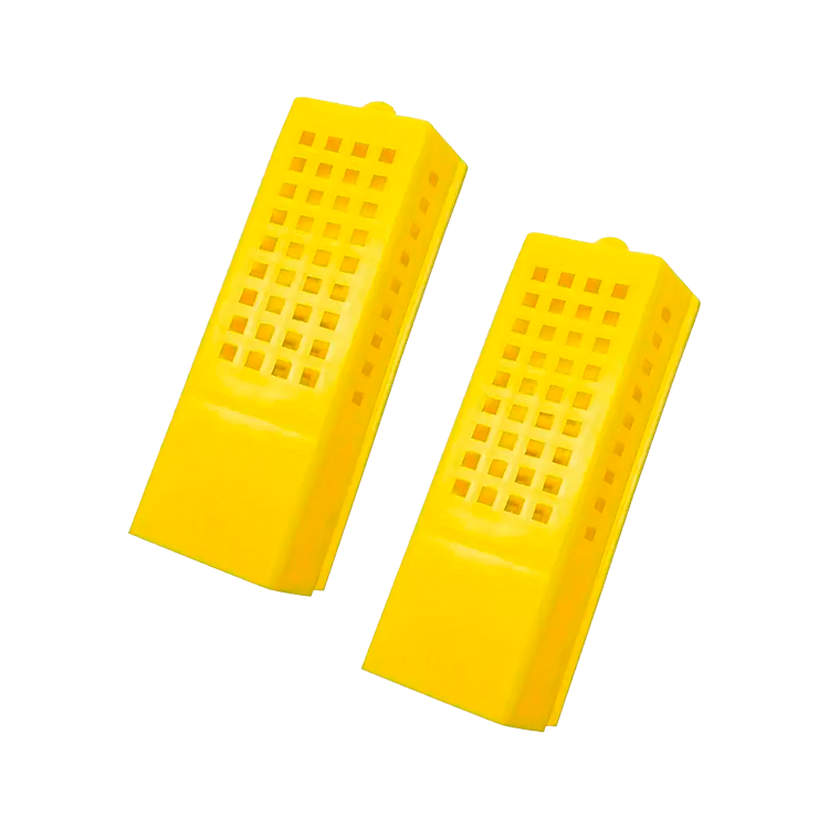 Jaula Benton de plástico, usado para transportar, comprar y vender reinas. También se puede utilizar para la introducción de reinas vírgenes o fecundas.